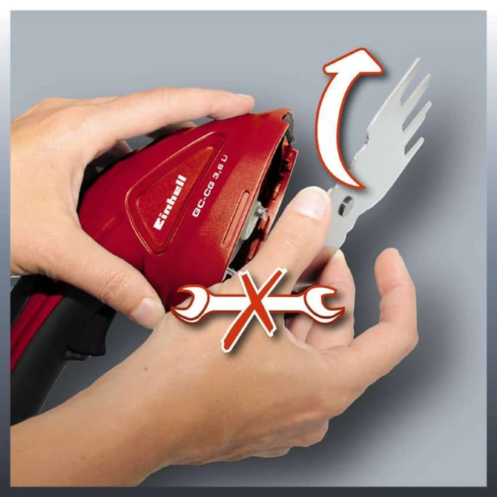 Cette débroussailleuse et tondeuse à gazon sans cordon gc-cg 3,6 li, pratique et compacte, de la marque einhell effectuera rapidement des petits travaux de coupe sur les bordures de pelouse, les buissons et les arbustes hors réseau. L’interrupteur de sécurité sur la poignée peut être actionné confortablement d’une seule main et empêche la mise en marche involontaire de l’outil. Les lames durables de haute qualité garantissent des performances de coupe exceptionnelles et peuvent être changées en quelques étapes seulement, sans avoir besoin d’outils supplémentaires. Cet outil est livré avec une lame de coupe d’herbe et une lame de cisaille à arbustes. Grâce à la perche télescopique, vous pouvez utiliser la tondeuse à gazon sans effort, même debout. L’outil a une prise souple pour plus de sécurité et de confort.