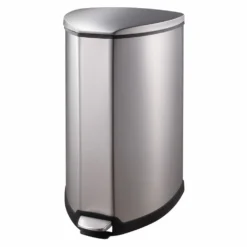 La poubelle à pédale grace argentée mate de la marque eko est une poubelle triangulaire unique avec un seau intérieur en plastique de 35 l. Cette poubelle à pédale est fabriquée en acier inoxydable brossé et possède un revêtement ingénieux résistant aux empreintes digitales. C’est une solution de confinement des déchets idéale pour toute cuisine moderne. Le bac à déchets est équipé d’un couvercle à fermeture silencieuse et s’adapte parfaitement au mur ou dans un coin avec son look avant-gardiste !