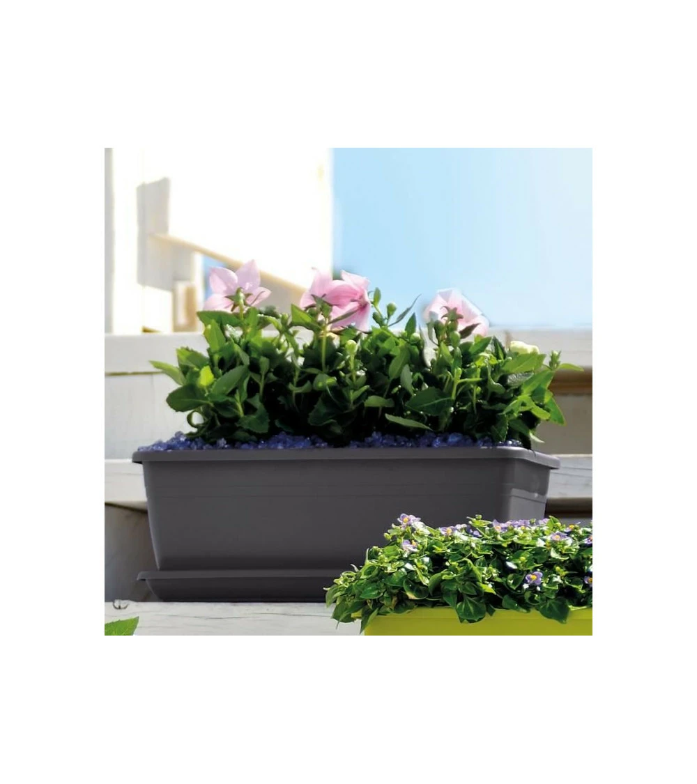 Deroma jardiniere rectangulaire day r anthracite – 50 cm h14,5 cm – contenance : 8 litres – percé – coloris : anthracite – matiere recyclat 100% recycl’ et 100% recyclable / injecté – résistant au gel et aux uv – usage extérieur.