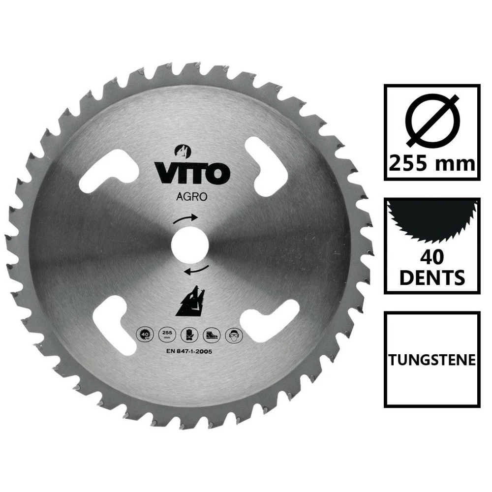 cette lame de coupe en tungstène pour débroussailleuse possède 40 dents pour un diamètre de 255mm.alesage 25.4