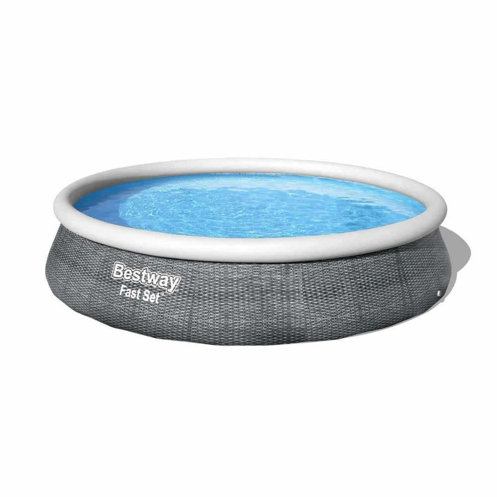 Piscine Gonflable Hors Sol Aral Imitation Rotin. Ronde 396x84cm Avec Pompe De Filtration. Filtre à Cartouche Et Cartouche Filtrante