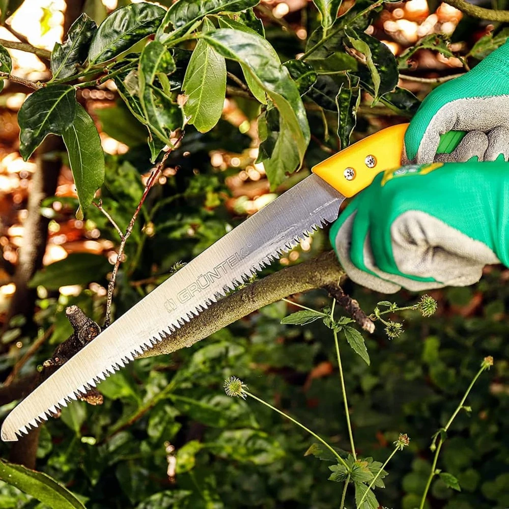 Cette scie d’élagage barrakuda de la marque grüntek est spécialement conçue pour un usage professionnel. Elle est faite d’acier à haute teneur en carbone extra fort avec 7 dents par pouce. Elle comprend également un affûtage tridimensionnel des dents. Affûtage tridimensionnel des dents : la dentelure spéciale de la lame (7 dents par pouce et affûtage tridimensionnel des dents) assure une utilisation sans effort et durable pour un sciage efficace et propre du bois frais et du bois sec.poignée confortable et antidérapante : la poignée ergonomique avec une prise à deux composants et des parties de poignée au toucher doux repose confortablement et sûrement dans votre main.rangement sûr de la scie : l’outil de sciage de jardin peut être facilement rangé en toute sécurité grâce au trou de suspension pratique dans votre atelier, dans le jardin ou autour de la maison.scies d’élagage de jardin fiables : cette scie de jardin barrakuda de la marque grüntek scie différents types de bois – à l’intérieur comme à l’extérieur de manière fiable. Un sciage sans bourrage est assuré grâce à la disposition spéciale des dents.